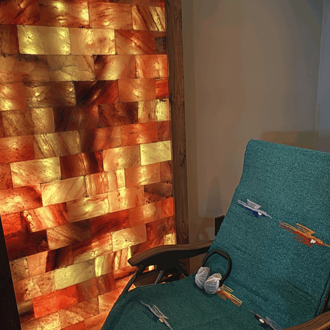 Explore massage therapy with Latisa, Halo Salt Therapy in our glowing Himalayan salt room, and our event space rental.